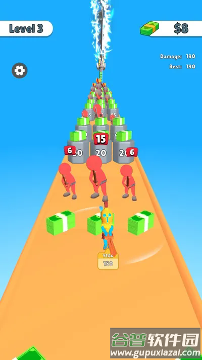 2、点击开始按钮后,操控角色向前冲刺,沿途收集金币并迎战敌人;