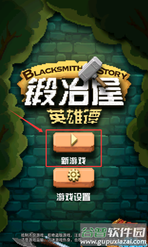 1. 点击红框箭头标注的新游戏按钮,开启锻造屋传奇旅程;
