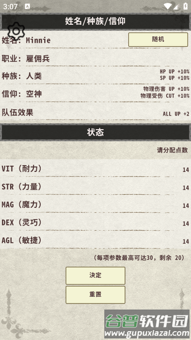 启动游戏后首先进入角色创建界面,玩家需要从不同种族、属性和职业中做出选择。