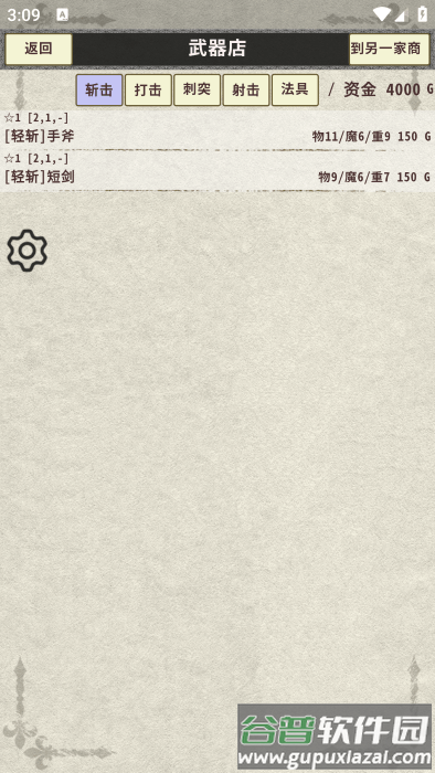 前往武器店购置与角色属性相匹配的装备道具。