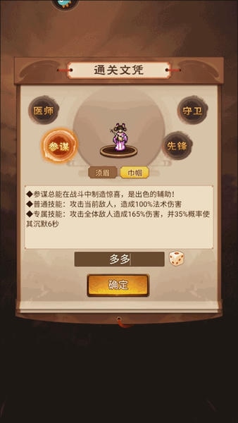 3、接下来挑选心仪职业,图中展示为参谋职业;