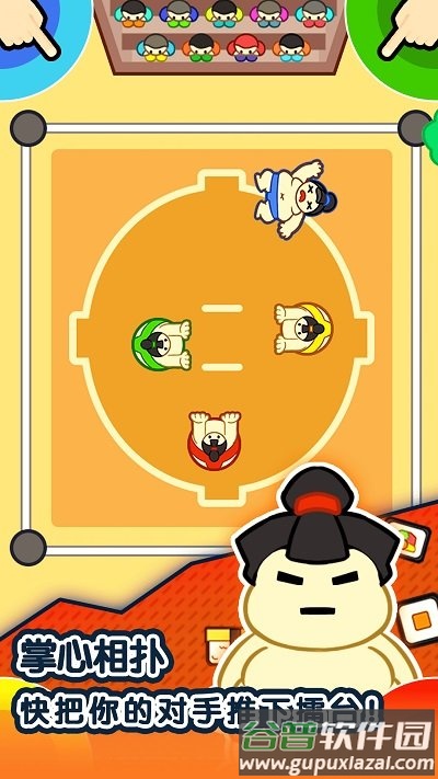 1、在手机屏幕上体验相扑乐趣,快速将对手推出擂台范围;