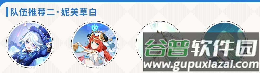 阵容组成:妮露、芙宁娜、纳西妲、白术