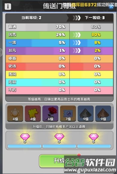 A:传送门等级提高后,召唤高品质士兵的几率上升,士兵解雇时提供的金币与军团经验也会更多。