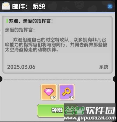 系统会通过邮件发放钻石和时空之钥等资源,记得及时查看收件箱。