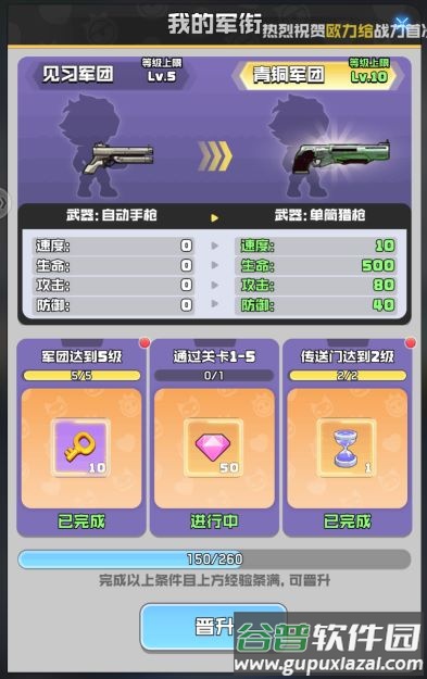 A:晋升军衔可突破军团等级上限,同时提升军团枪械等级与整体属性。