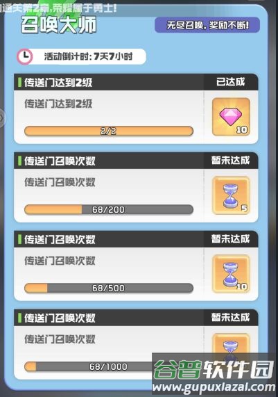 传送门达到一定等级,可领取少量钻石奖励。