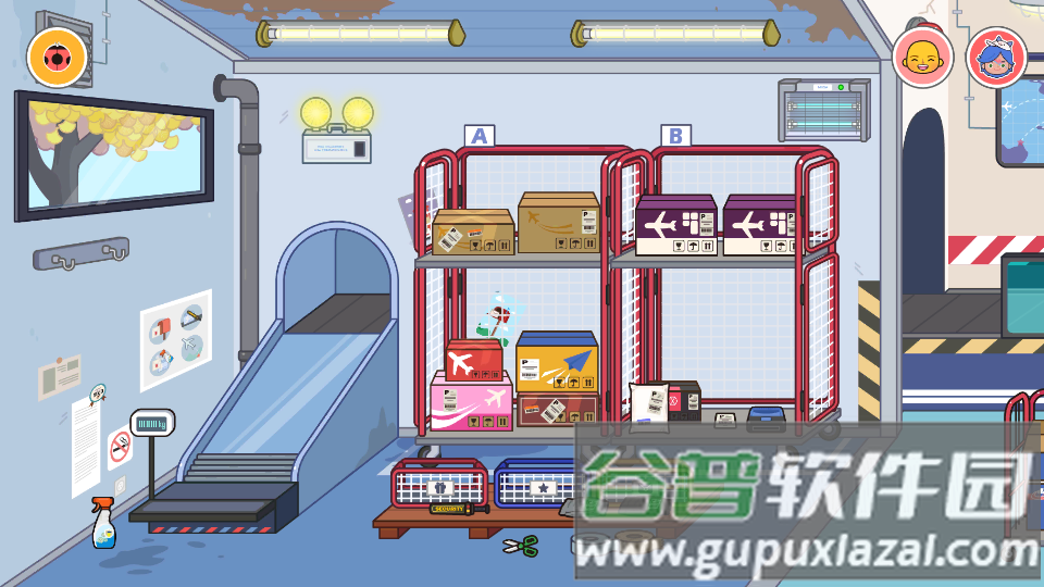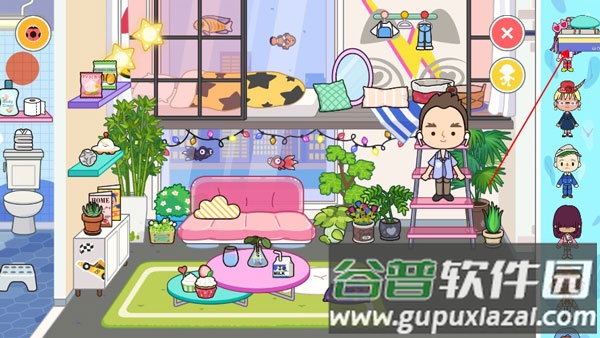 进入房间后,再次点击右上角人物图标,把拿着纸箱的角色放进屋里。