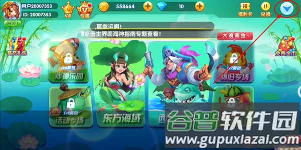 6、西方渔场:开放高级和初级海魔猎场,在场次内获得魔晶,可兑换各种超级弹头;