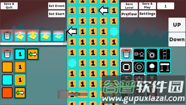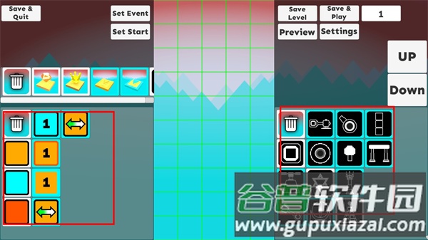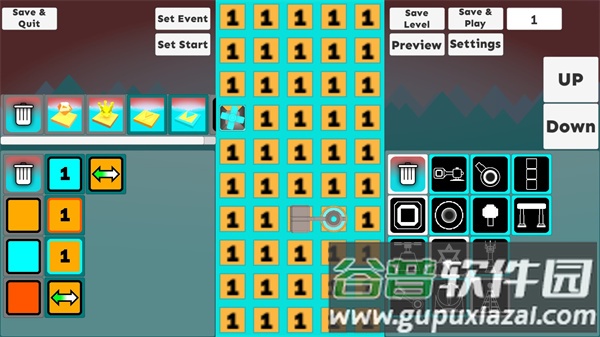 2. 左侧提供各种地板与奖励元素,右侧为道具栏;