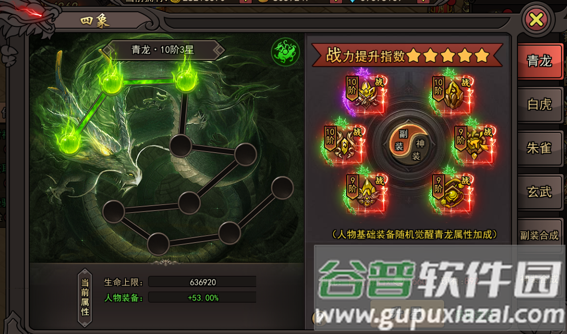 2、四象系统包含青龙、朱雀、白虎、玄武四个部分;