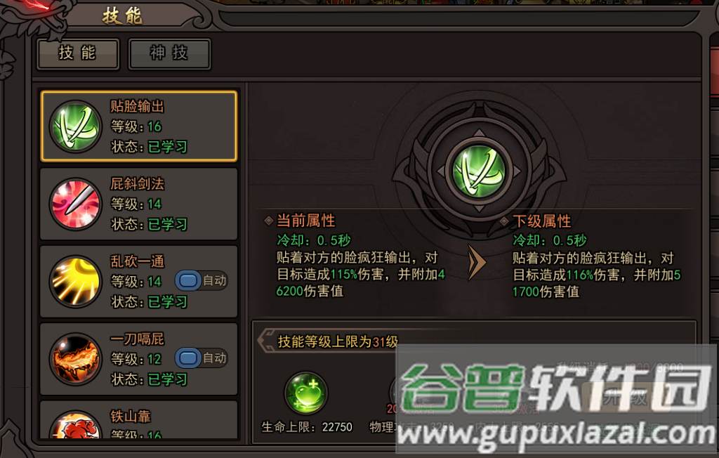 3、技能最高可升至31级,每10级激活相应属性,提升生命上限、魔法攻击与内力上限。