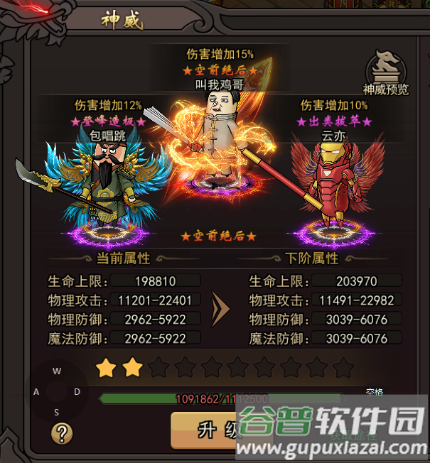 2、完成指定任务获得神威值,提升神威等级并获取属性加成;