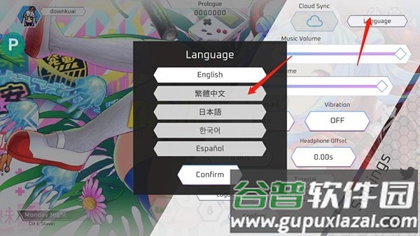 2、在菜单中找到“LANGUAGE”选项,进入后选择“繁体中文”;
