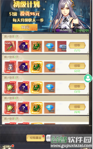 5、购买经验基金(分为98元的经验基金与198元的高级经验基金,高级基金需次日出现);
