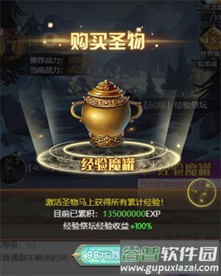 6、购入经验魔罐(售价98元),可在经验祭坛中获得100%额外收益。