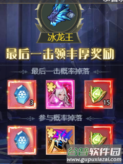 开放时间为12:10-12:40与21:10-21:40。奖励依据最后一击概率掉落与参与概率掉落发放,奖励内容见下图。
