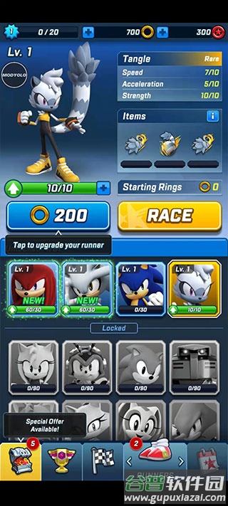 可使用索尼克、艾咪、塔尔斯、纳克鲁斯、夏特、露姬等多位经典角色参赛;