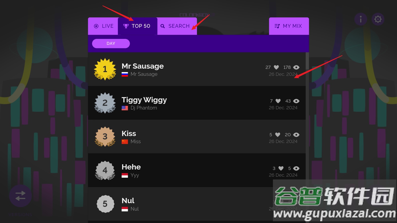 Top50排行榜根据玩家混音作品获得的投票数进行排名;保存公共混音后,作品即可进入排行榜参与竞争;获得的票数越多,排名就越高;你可以将作品链接分享给朋友,邀请他们为你投票。