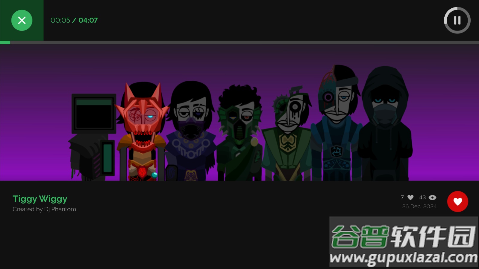 4、点击角色可以将其变为黑色静止状态,音乐随之暂停;直接向下滑动角色,则可以快速移除装饰。