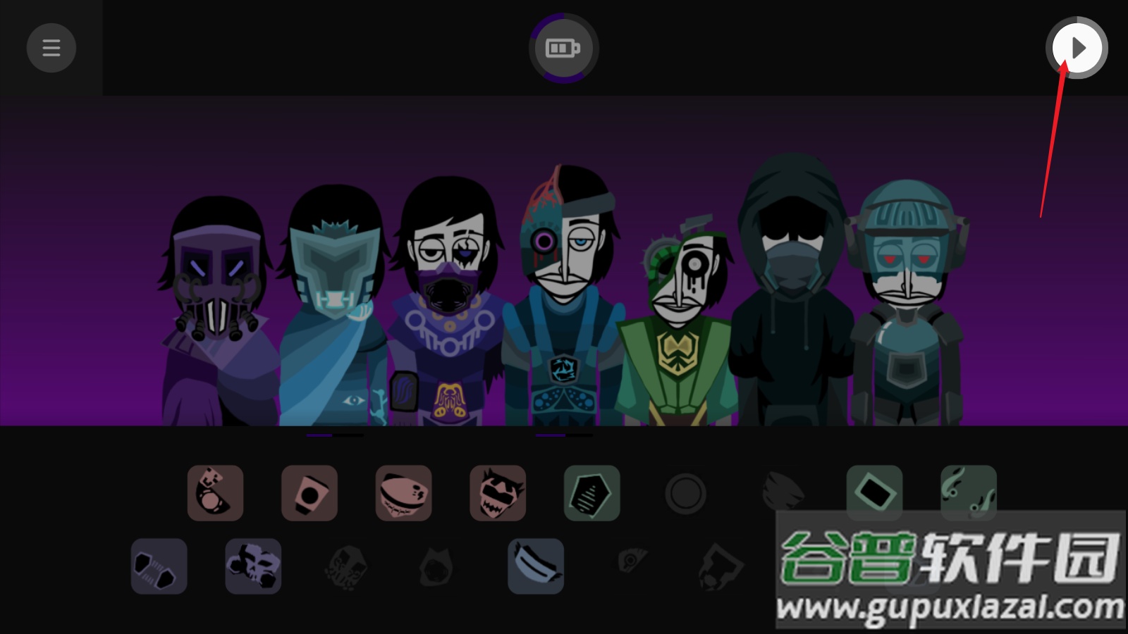 1、进入游戏主界面,点击中央的“开始”按钮,即可来到创作界面;你会看到七个未上色的角色,他们正等待你从下方选择装饰进行搭配。
