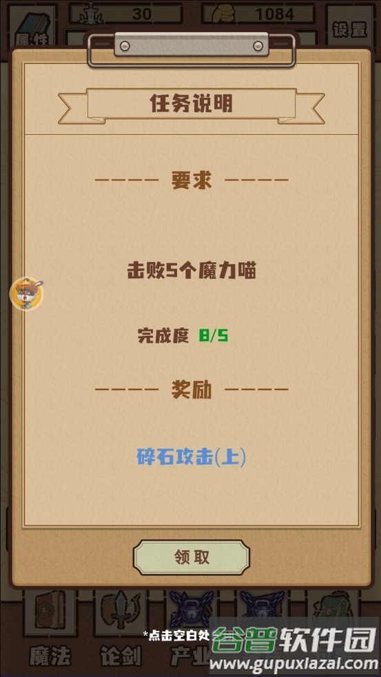 2、不断点击屏幕,打败魔力喵后可以开启自动战斗。