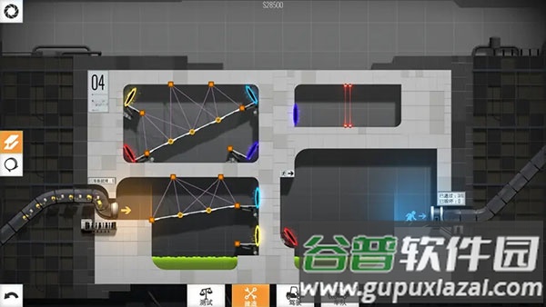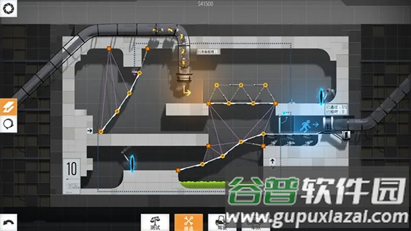 在光圈科技的实验室中,玩家需要巧妙运用传送门、动力凝胶等特殊道具,解决一系列结构力学谜题。游戏的核心不仅是搭建稳固的桥梁,更要让车辆借助环境与工具,安全穿越复杂地形与机关,最终抵达终点。
