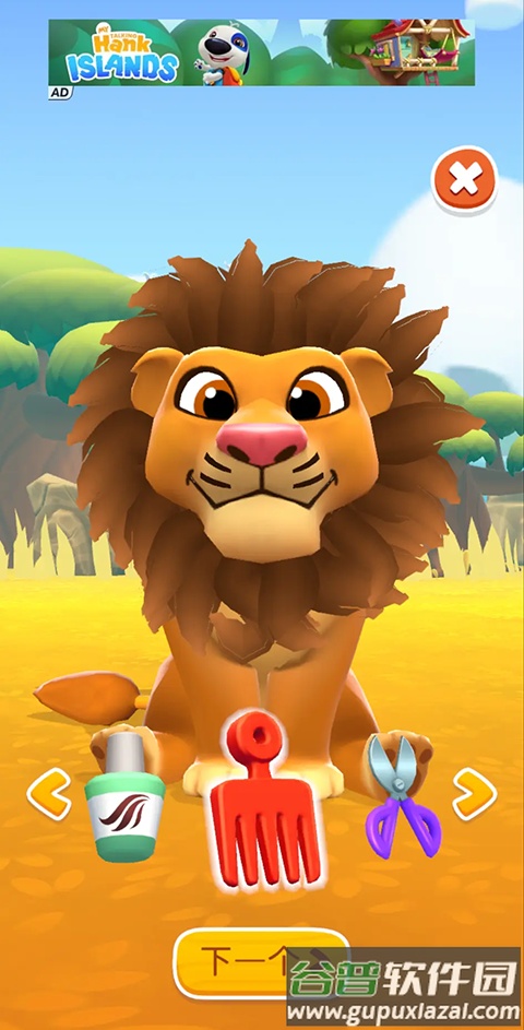 狮子的发型脏乱等待你来打理;可以为它洗头、吹风、梳理并修剪发型;染上漂亮发色,戴上美丽发饰;今天它又是一只帅气的小狮子,能和你一起快乐玩耍。
