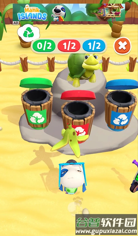 坐在乌龟的硬壳上转动,需要躲避障碍并收集金币;在乌龟陪伴下,进行海岛垃圾收集与分类,获得有价值奖励,净化海岛环境;这个体验让大家意识到,一连串小行动能产生更广泛的环保影响。