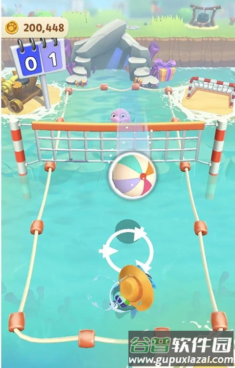 在沙滩上,通过木质弹射器喂食海豚,获取金币奖励;还能和海豚进行排球比赛,赢得丰厚奖励;这是一项非常愉快的娱乐活动。