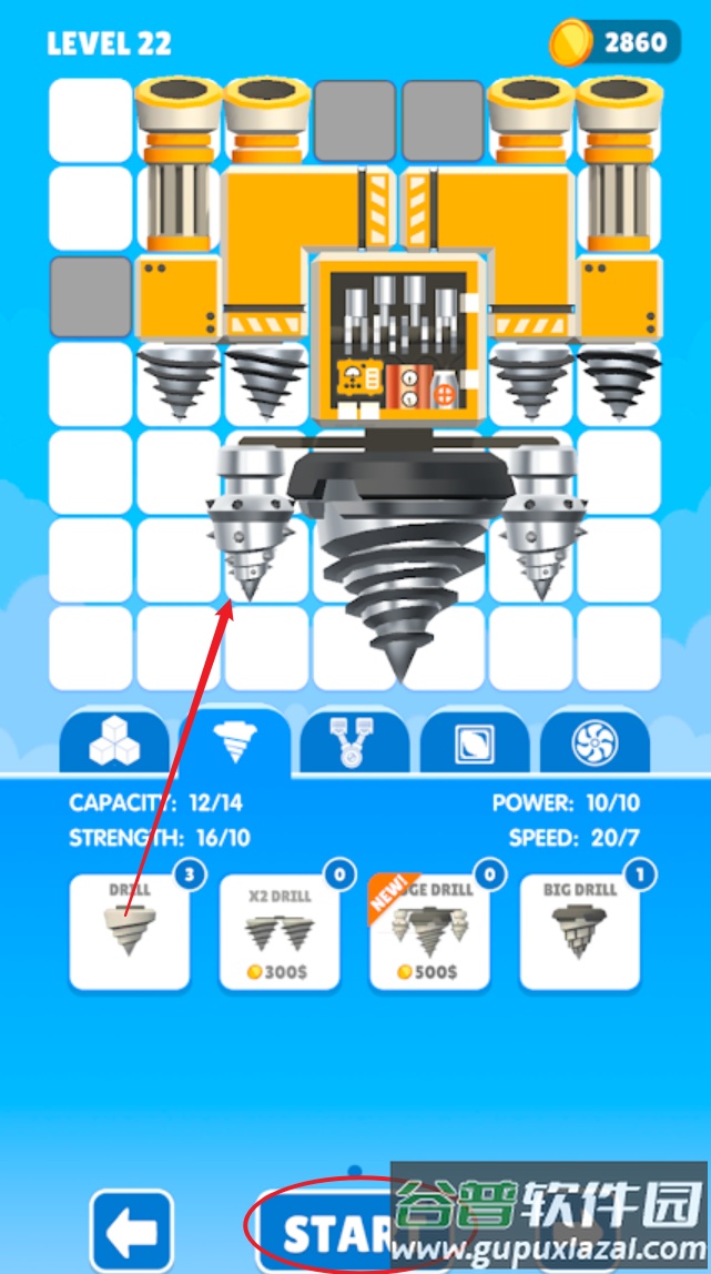 进入游戏后,玩家首先拖动合适配件安装到钻机核心,形成有效联动系统,以达成最佳钻探效果;随后点击开始按钮进入钻探比赛。