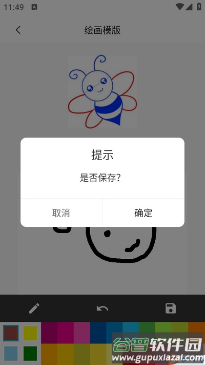 3、点击蓝色按键,跟随步骤绘画或参照完成图填色,画好后点击保存;