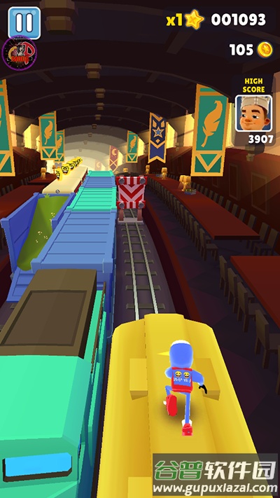 1、核心跑酷机制设计独特:玩家需在地铁轨道上持续前进,通过跳跃、下蹲与转向躲避各类障碍,同时搜集金币以提升分数与成就。