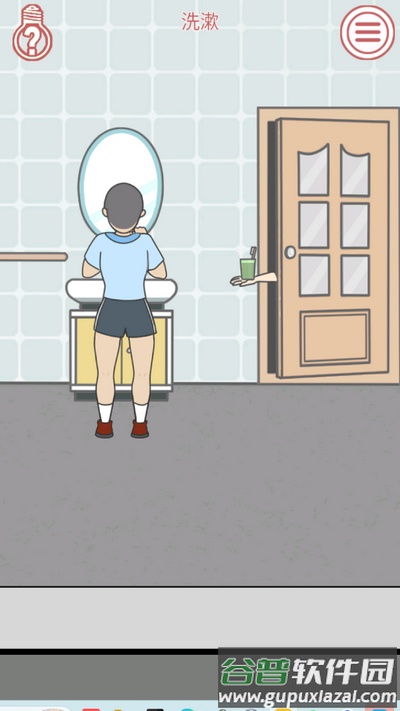 点击厕所门,接着将牙杯递进去,最后点击伸出来的牙杯即可