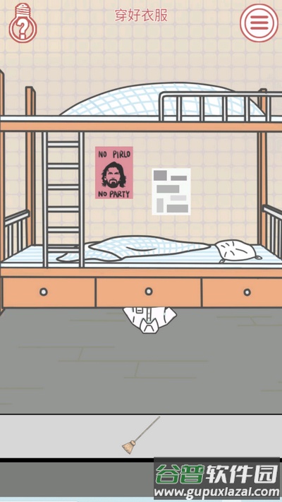 先点击扫把获取道具,再点击床底用扫把清理出衣服