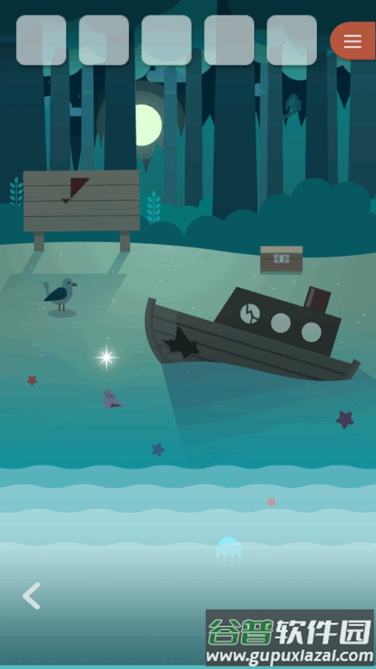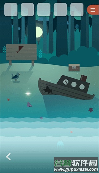 1、游戏始于一座小岛,点击闪烁白光获得贝壳,随后向左移动。