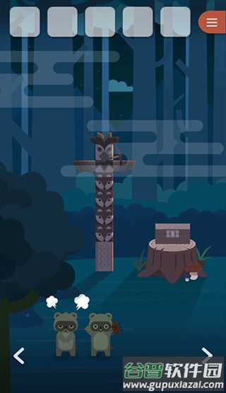 7、遇到两只小浣熊,点击它们左侧的树干,找到一只独角仙,交给浣熊。