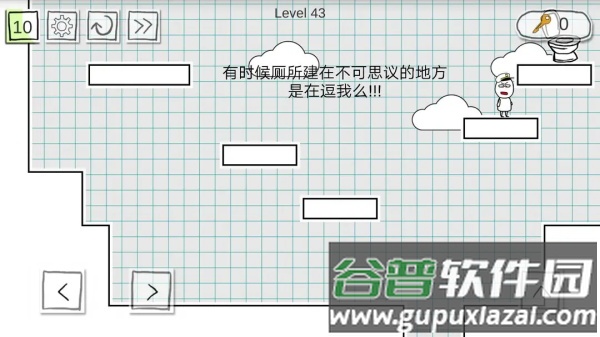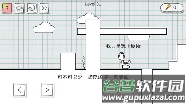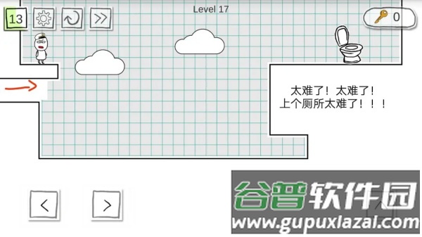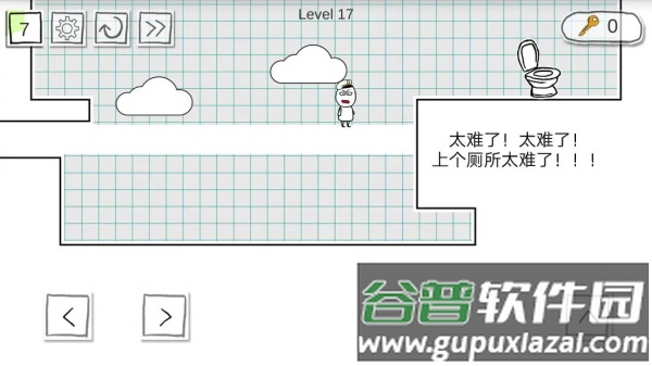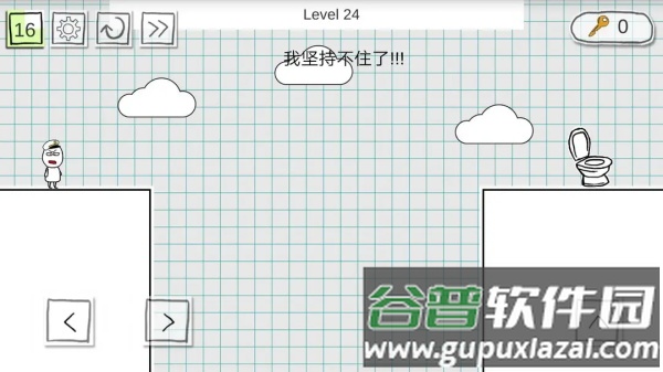 这是一款有趣的休闲游戏,看似简单实则颇费思量。游戏目标明确,即帮助主角顺利如厕。每关时间限制较短,需在倒计时结束前抵达马桶位置。目前我也卡在某一关卡。游戏提供移动与跳跃两种基本操作,移动控制方向,跳跃用于跨越障碍。当不知如何下手时,正是展现你闯关实力的时刻。动作跳跃的玩法融合了解谜、益智与恶搞元素,若未达成目标,主角会面临尴尬局面。运用你的智慧进行挑战,即便遇到困难也请坚持完成,并且务必在规定时间内达成。