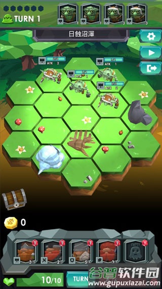 战斗场景由19块六角形地板构成,敌我双方轮流行动攻防。部分战场地形会带来战斗优势,巧妙利用这些优势可加快节奏、取得更好战果。游戏还提供丰富的道具系统与特色挑战主题,搭配精美的场景绘制与轻快的背景音效,值得尝试体验。