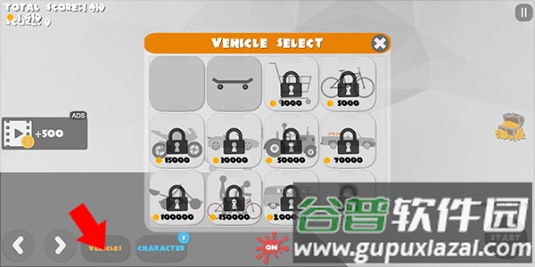 3、积累金币后购买交通工具,如滑板车或自行车,加快速度可提升撞击破坏力。