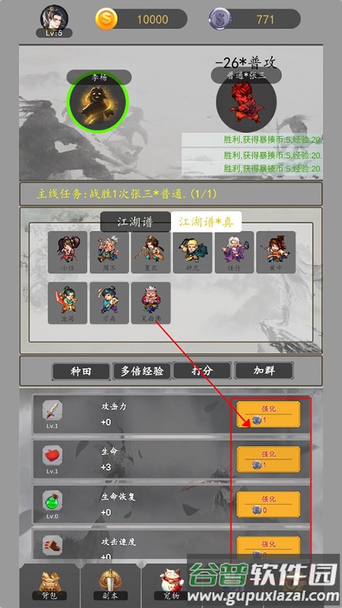 暴揍江湖以文字修仙为核心,融合水墨画风,展现出一个别具一格的武侠世界。玩家可修习各类功法提升修为,挑战江湖高手并赢取丰厚奖励;副本中设有强大首领,击败它们能获得稀有装备与大量资源,显著提升角色能力。