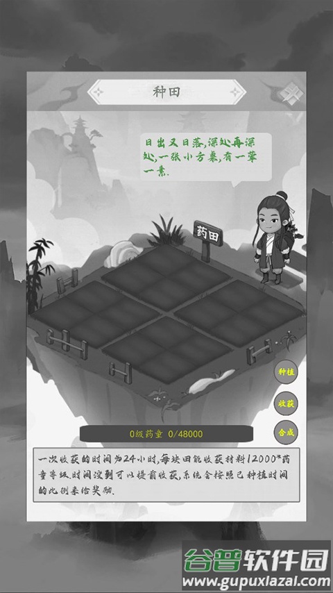 药童会随种植过程逐步升级,每提升一级增加百分之十的收获量。