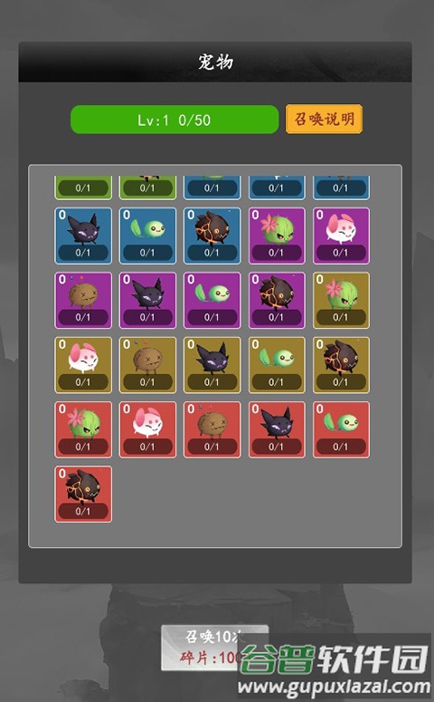 宠物按品质从低到高分为白、绿、蓝、紫、褐、红六阶;收集一千枚碎片即可召唤宠物,它们将为角色提供属性增益与战力支持。