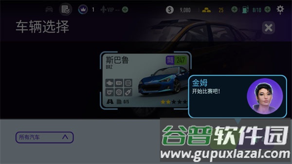 2、接着在车库中挑选适合当前赛事的车辆参与对决;