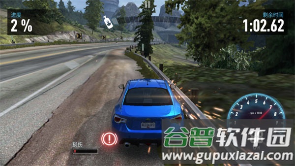 6、碰撞系统较为逼真,比赛中若撞击障碍物,系统会提示车辆具体部件受损情况。