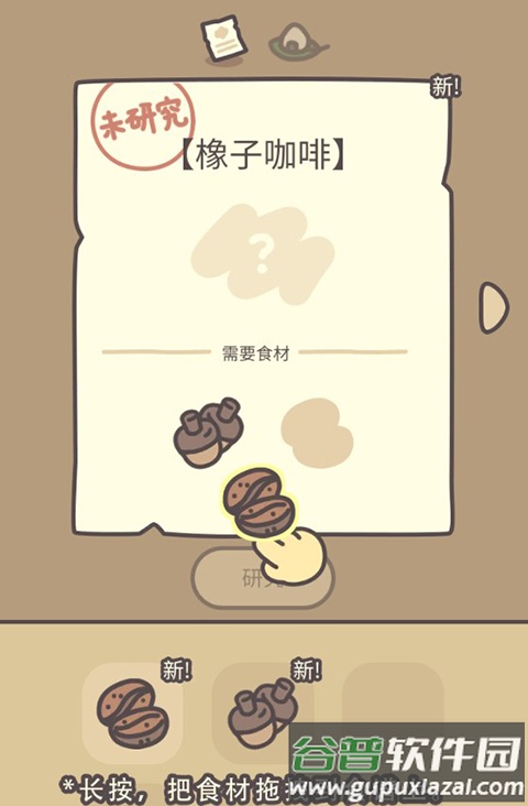 3、店内藏有大量可解锁的食谱,你需要先找到食谱上标明的材料,将其拖拽到对应位置便能完成解锁;之后就可以为客人提供这道新菜品了。