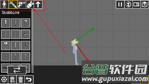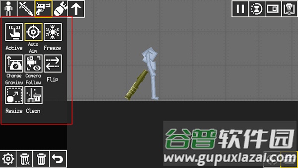 4、在界面左上方可以切换枪械、子弹、角色、冷兵器等类别,并将它们拖入地图使用;