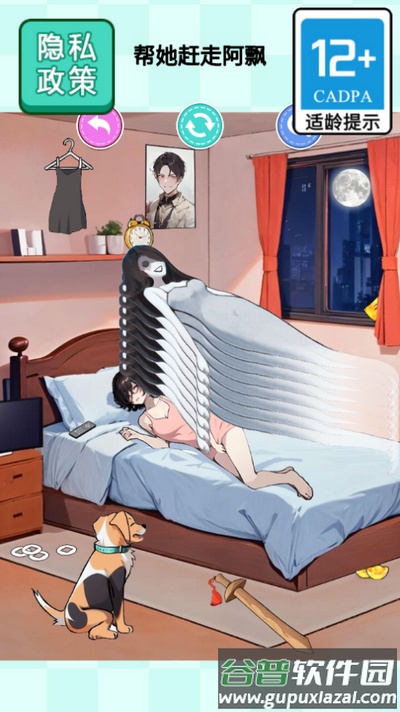 1、玩家需要拖拽场景里的不同道具,将其放置在合适位置,以此赶走阿飘;