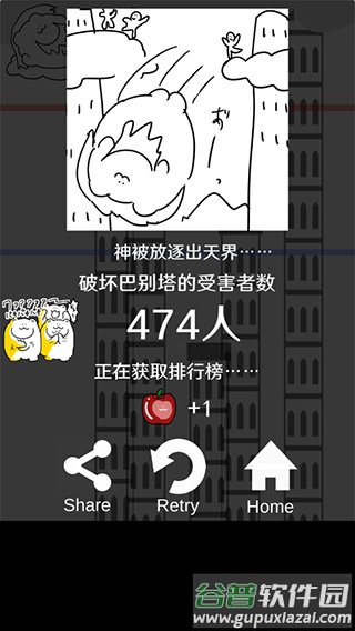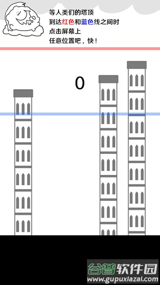 4、若人类建造的塔楼顶端超过红线,则游戏宣告失败。