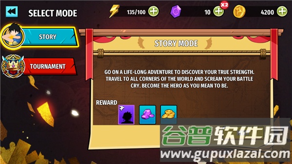 3、右下角菜单包含剧情章节与锦标赛等多种玩法,玩家可依据自身喜好选择体验;